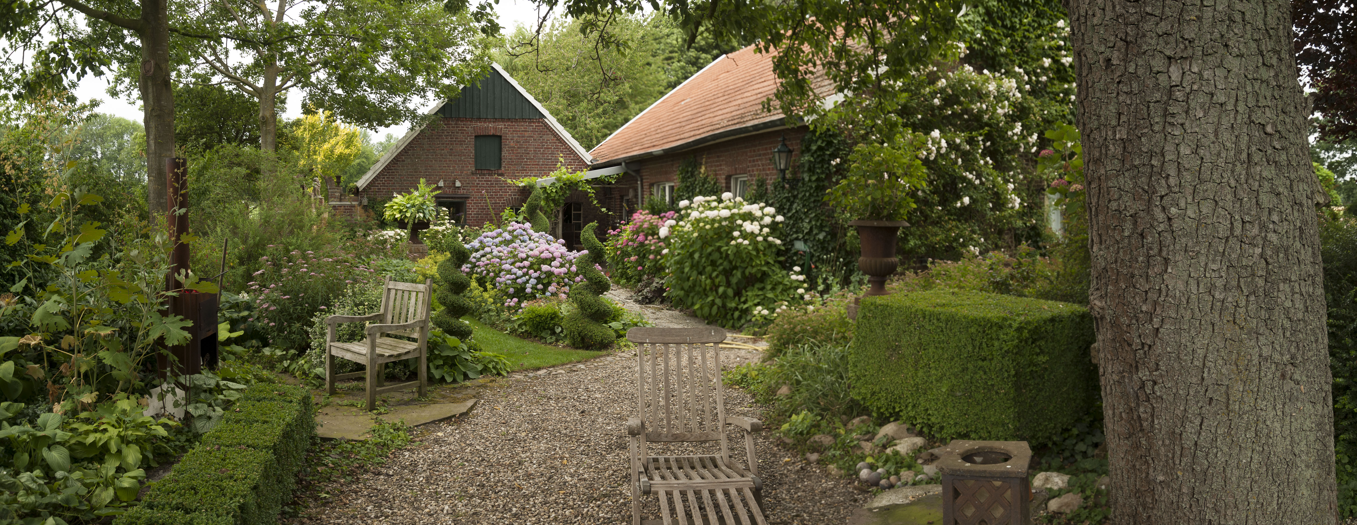 Unser Garten umfasst ca 5000m² auf dem Grundstück eines ehemaligen kleinen Bauern-hofes. Die ganze Leidenschaft begann vor 25 Jahren. Wie das so ist, wenn man heiratet. Neben der Wohnung will man ja auch ums Haus herum Anlagen gestalten. So wurden zunächst einige Beete am Wohnhaus entlang angelegt. Dann begann die Begeisterung. Auch um die ehemaligen Wirtschaftsgebäude und an deren Fassaden wurde gärtnerisch weiter gestaltet. Es gab dann irgendwie kein Stoppen mehr. In jedem Jahr habeich etwas neues hinzugefügt. Genügend Platz gab es ja auf dem Hofgelände. Bis heute ist der Garten bis an ein kleines Wäldchen heran-gewachsen, das zu einem Schattengarten gestaltet wurde. Azalleen, Rhododenren, Funken und andere Schatten-pflanzen haben dort Ihr Zuhause.