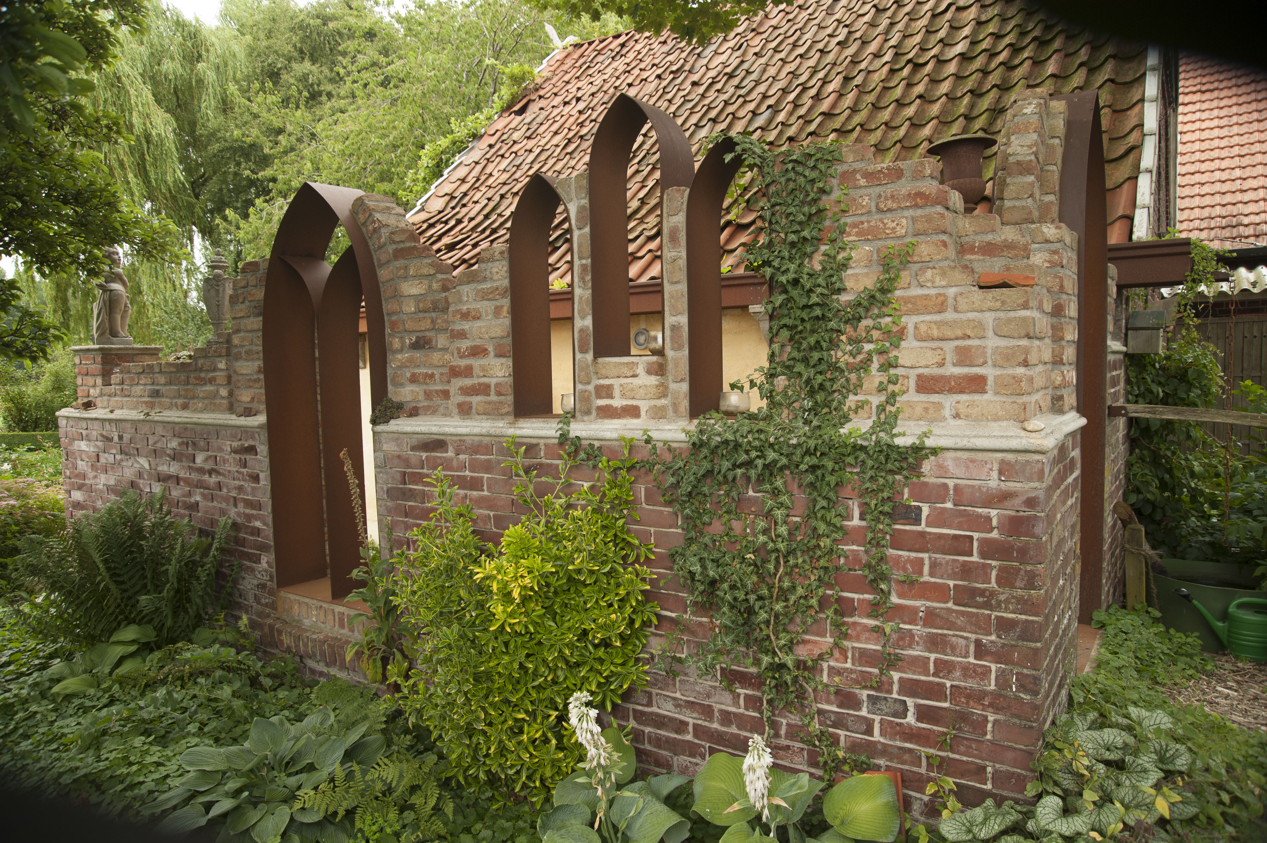 Der Garten hat einen sehr interessanten Schnitt. Beeindruckt haben mich die Skulpturen und selbst gebauten Säulen, die Herr Kreyerhoff wunderbar in den Garten integriert hat.![]()